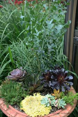 She has potted arrangements here and there. Here's one inspired by Pam at Digging and another full of succulents.